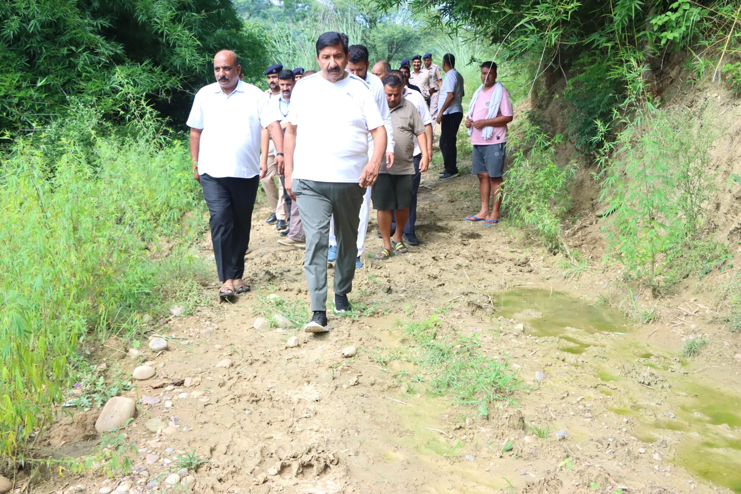 इसके बाद, उपमुख्यमंत्री ने पंडोगा, खड्ड और पनेड़ा क्षेत्र में खड्डों और नालों के तटीकरण कार्यों समेत अन्य विकास परियोजनाओं का निरीक्षण किया। उन्होंने आठवाईं खड्ड पर 3.35 करोड़ और खड्ड गांव में 6.90 करोड़ से किए जा रहे बाढ़ नियंत्रण कार्यों की प्रगति का जायजा लिया। उन्होंने इन कार्यों को समय पर और उच्च गुणवत्ता के साथ पूरा करने के निर्देश दिए।इसके अलावा, उपमुख्यमंत्री ने पनेड़ा में चेक डैम का दौरा करते हुए डैम से सिल्ट हटाने और उसकी मरम्मत की जरूरत को भी प्राथमिकता से पूरा करने के निर्देश दिए।