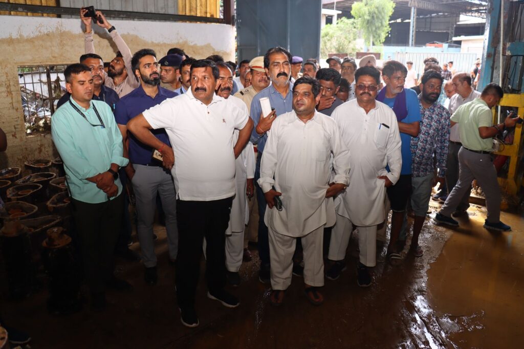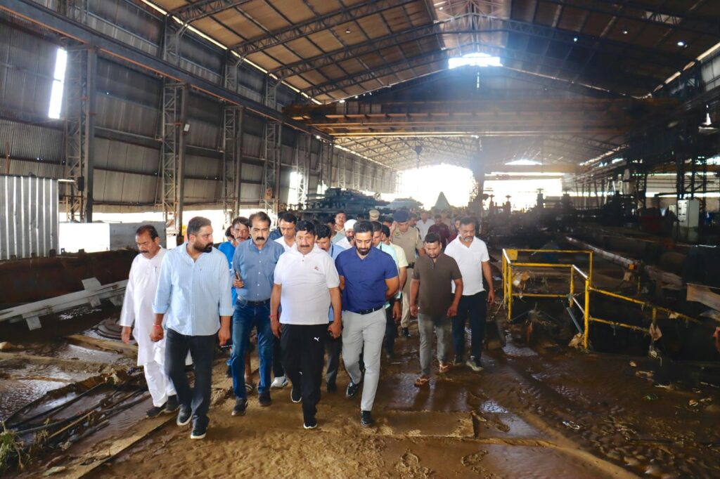 ऊना, 12 अगस्त. उपमुख्यमंत्री मुकेश अग्निहोत्री ने हरोली विधानसभा क्षेत्र में भारी बारिश और बाढ़ से हुए व्यापक नुकसान का जायजा लिया। सोमवार को अपने दौरे में उन्होंने बाथू-बाथड़ी क्षेत्र में बाढ़ से प्रभावित इलाकों, विशेष रूप से औद्योगिक इकाइयों में हुई क्षति का निरीक्षण किया। इस दौरान उन्होंने प्रीतिका ग्रुप ऑफ़ इंडस्ट्रीज, वर्धमान इस्पात और बाथड़ी में एक पेट्रोल पंप को हुए नुकसान का भी जायजा लिया। उपमुख्यमंत्री ने प्रभावित औद्योगिक इकाइयों के संचालकों और कर्मचारियों से मुलाकात कर उन्हें हर संभव सहायता का आश्वासन दिया। उन्होंने कहा कि हिमाचल सरकार इस कठिन समय में उनके साथ खड़ी है।