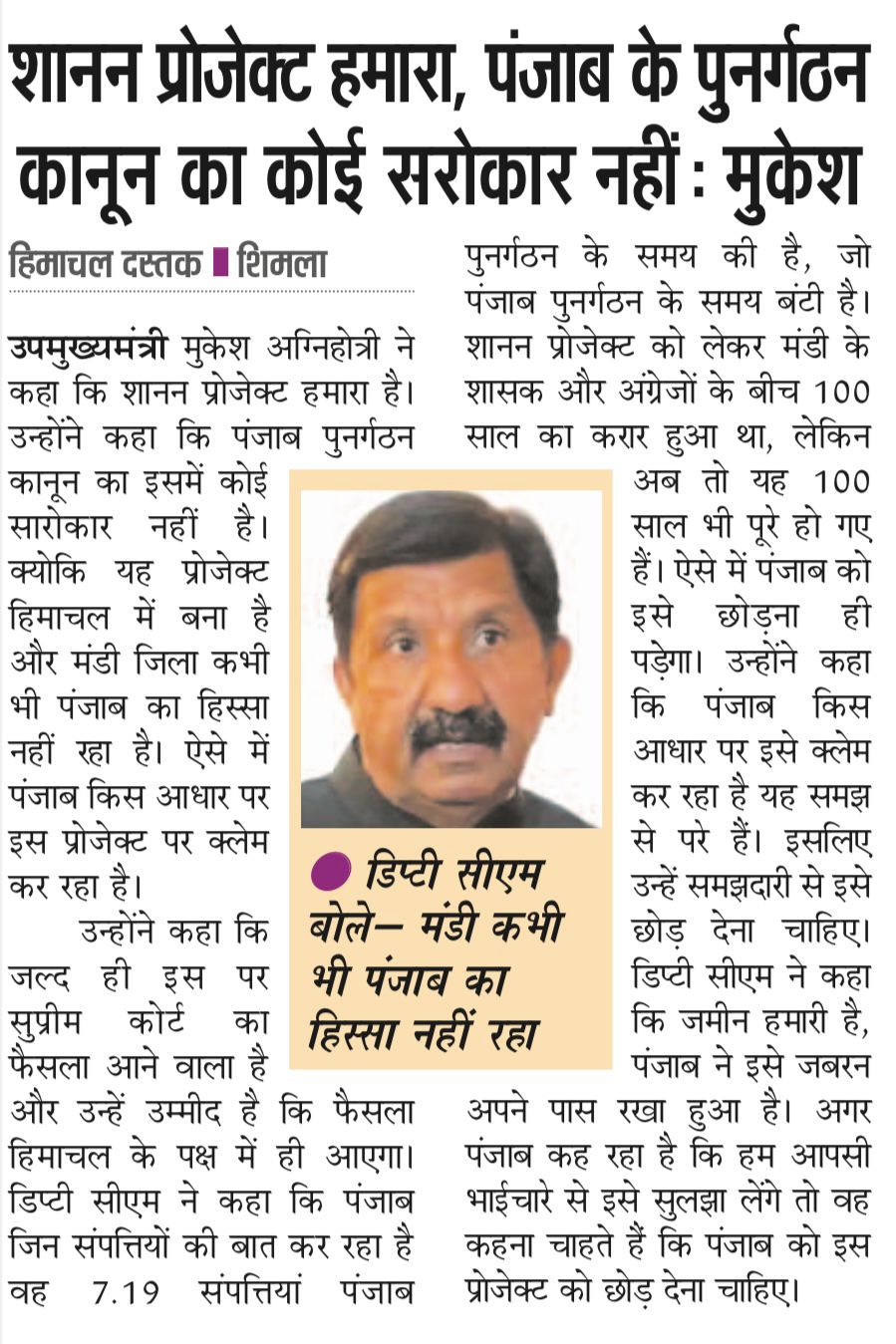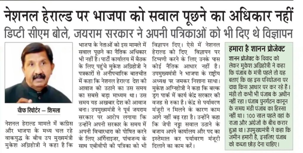श्री अग्निहोत्री ने कहा कि पहाड़ी राज्य में निर्माण में आने वाली दिक्कतों के चलते हमने अतिरिक्त आर्थिक सहायता के तौर पर केंद्र से 500 करोड़ की मांग की है। इसके अलावा, परियोजना के तहत अजोली-पोलियों सड़क के लिए 429 करोड़ रुपये की डीपीआर बना कर केंद्र सरकार को भेजी है। वहीं परियोजना में भविष्य में पानी की जरूरतों को देखते हुए 50 एमएलडी की सप्लाई सुनिश्चित करने के लिए भाखड़ा डैम से पानी उठाने की 170 करोड़ की स्कीम की डीपीआर भी केंद्र सरकार को भेजी गई है।