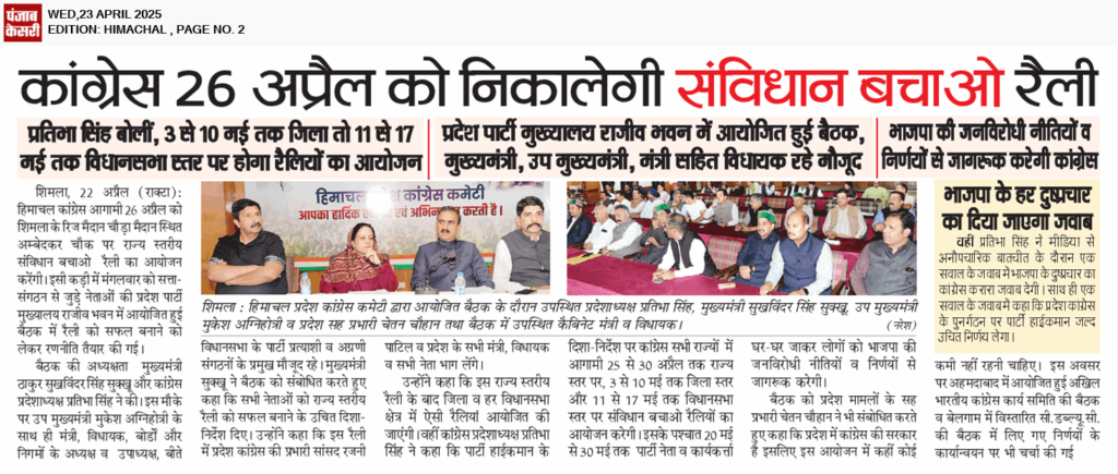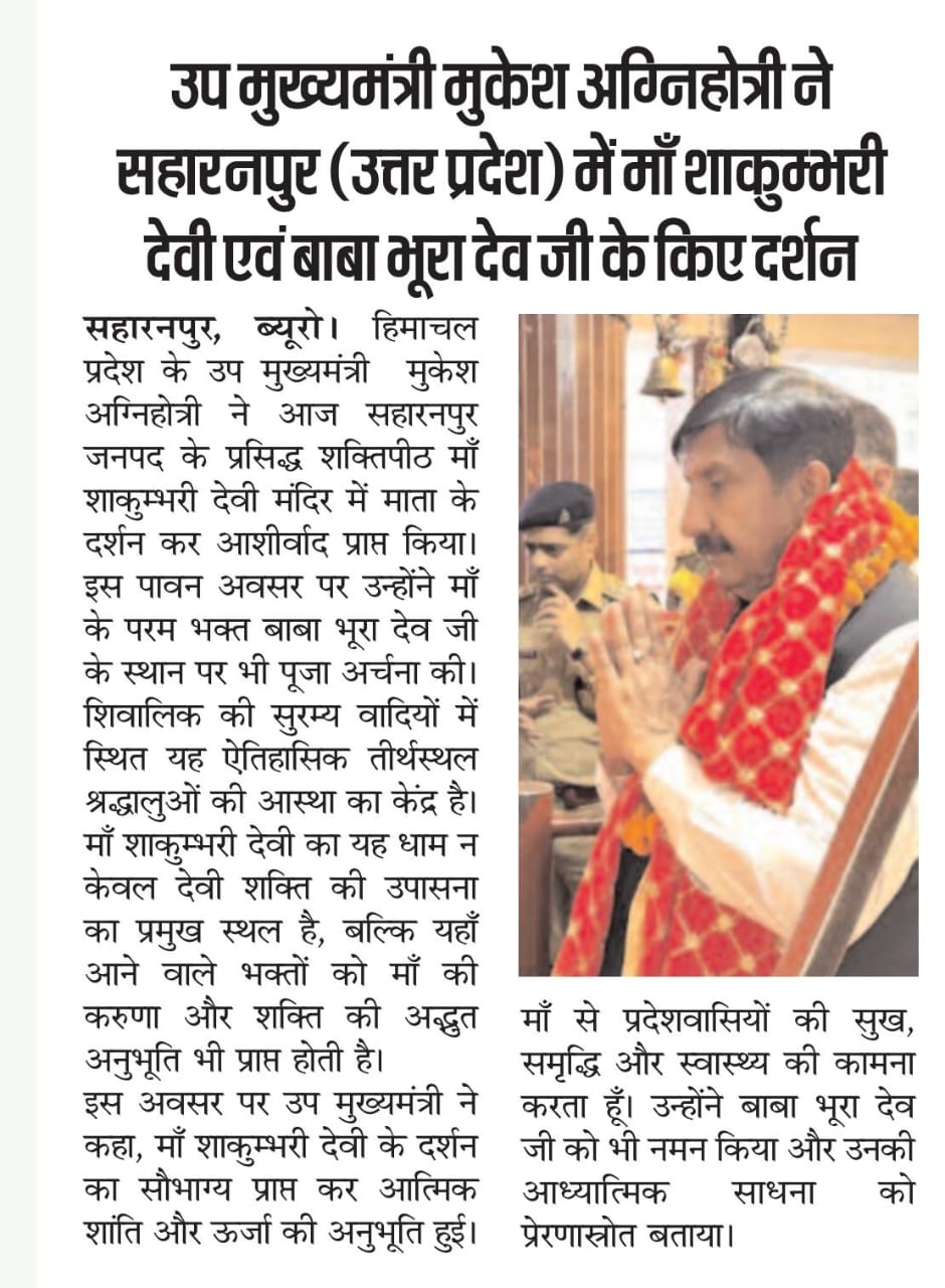 इस दौरान उपमुख्यमंत्री के साथ कांग्रेस के वरिष्ठ नेता रणजीत राणा, अविनाश कपिला,वीरेंद्र धर्माणी, कांग्रेस के प्रदेश प्रवक्ता विजय डोगरा, अधिवक्ता वीरेंद्र मनकोटिया, सुरेश ठाकुर, विनोद बिट्टू, जिला युवा कांग्रेस अध्यक्ष प्रशांत राय सहित अन्य गणमान्य उपस्थित रहे।