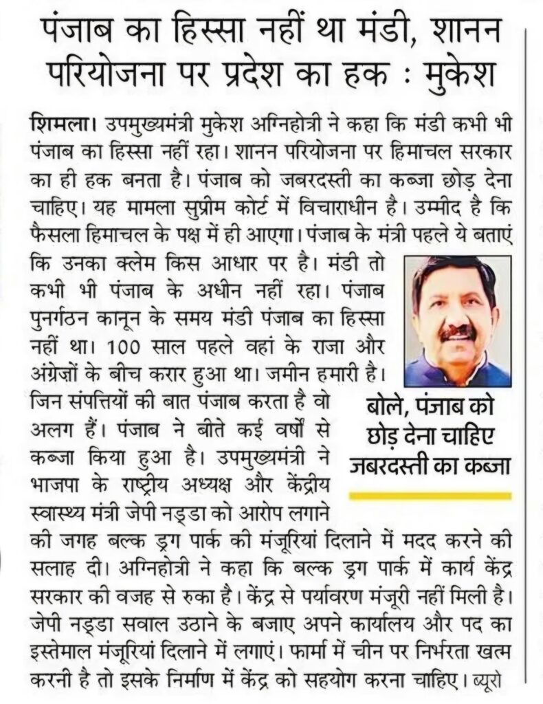 बल्क ड्रग पार्क निर्माण को लेकर हिमाचल सरकार पूरी तरह प्रतिबद्ध : उप मुख्यमंत्री